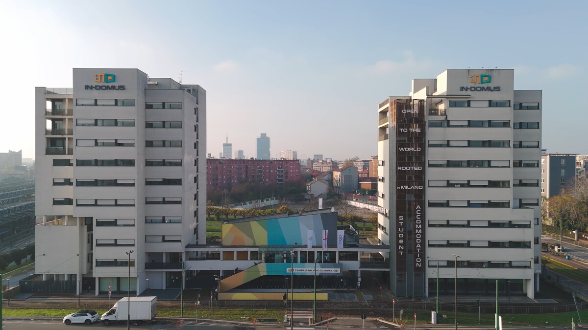 Live Milan without compromise: two modern towers, panoramic lounges and common areas designed for sharing and growth, in a dynamic and well-connected district. Just minutes from Lotto Metro station, with quick connections to the city centre and Politecnico di Milano – Bovisa Campus. Live Milan, build your future.
