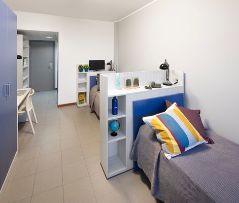 Bed in a twin en-suite room with access to common kitchens, designed for students looking for a practical and affordable living solution within the In-Domus residence